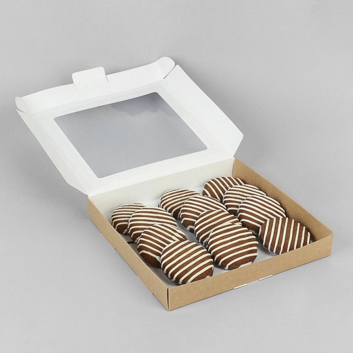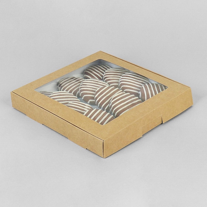 Коробка сборная без печати крышка-дно бурая с окном 18 х 15 х 5 см