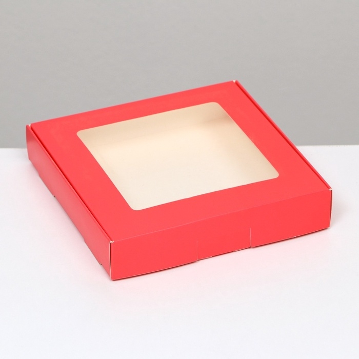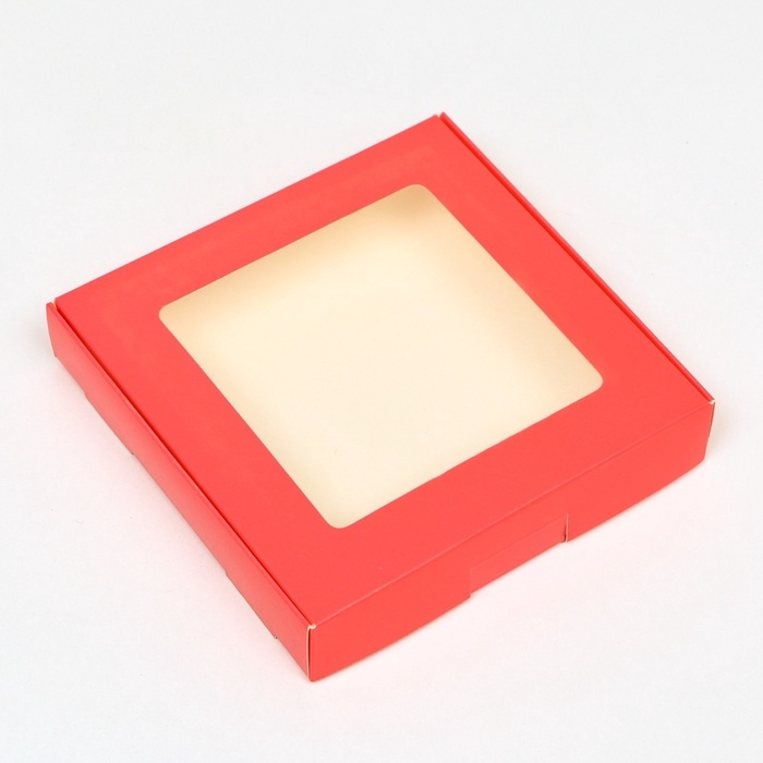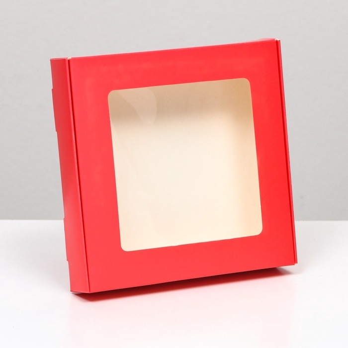 Коробка самосборная, с окном, красная, 16 х 16 х 3 см, набор 5 шт.