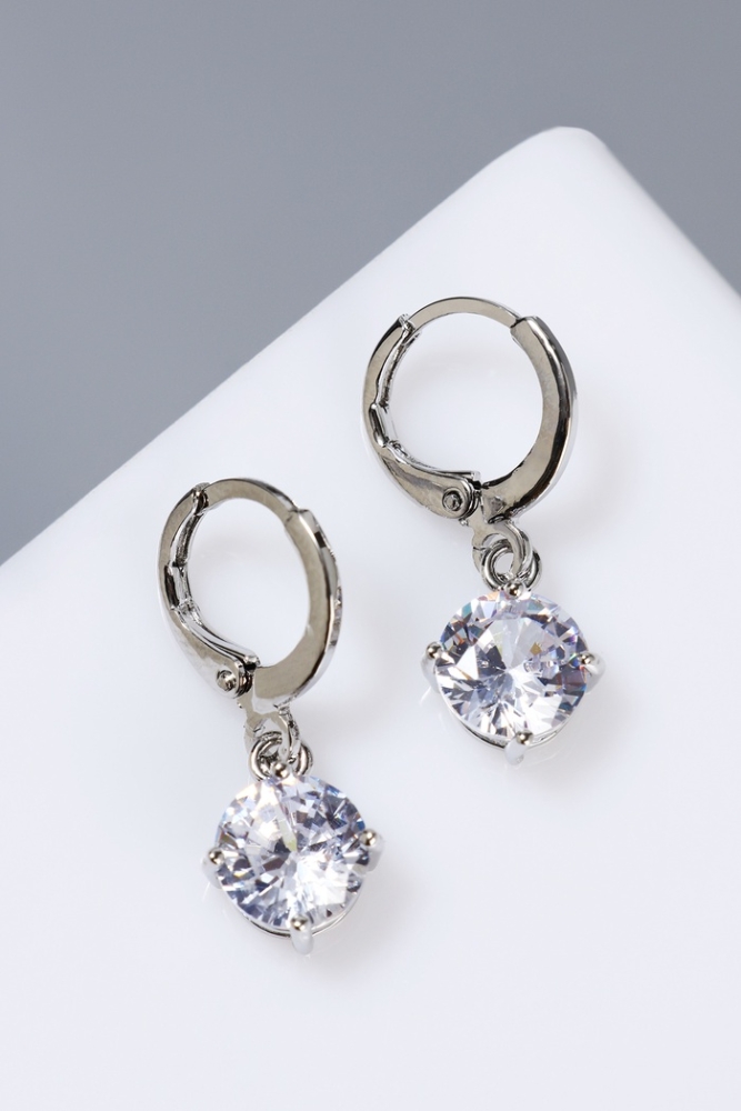 Серьги со стразами «Яркая классика» в обрамлении, цвет белый в серебре, d=1,4 см