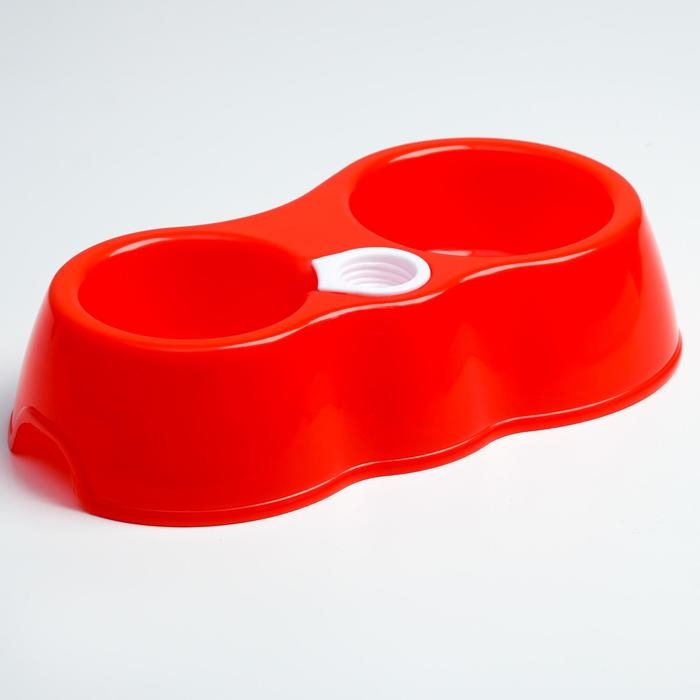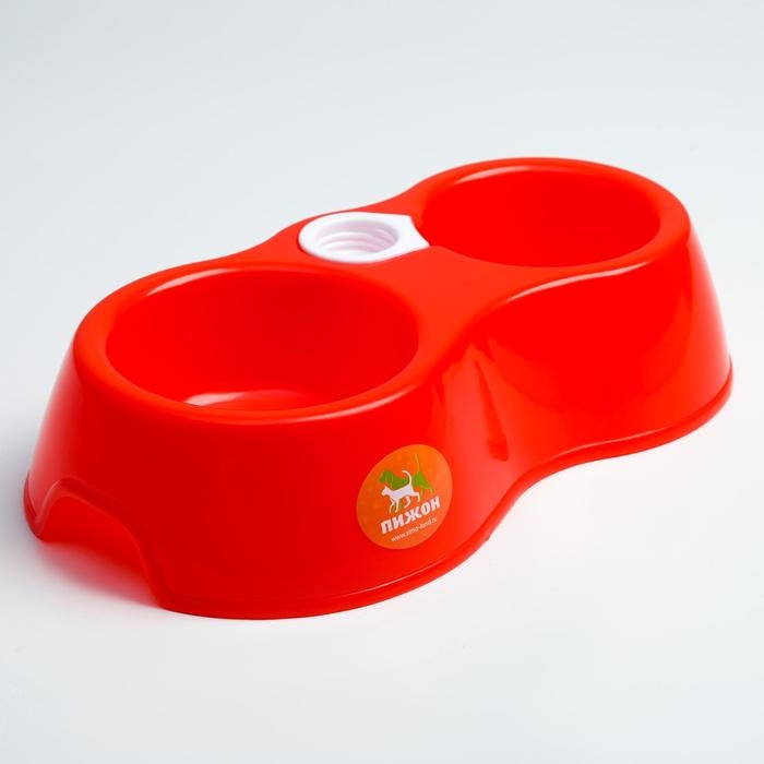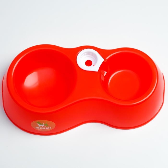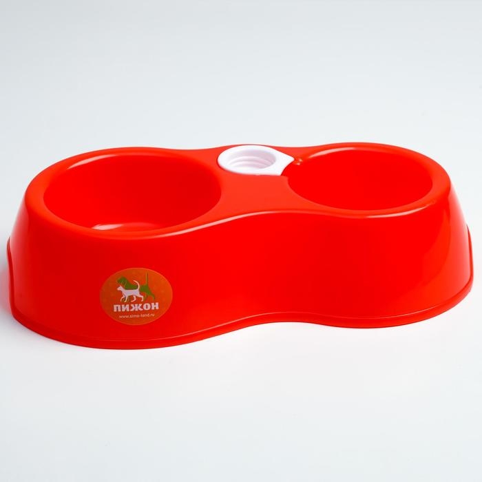 Миска двойная круглая, 27 х 16 х 6,5 см, красная