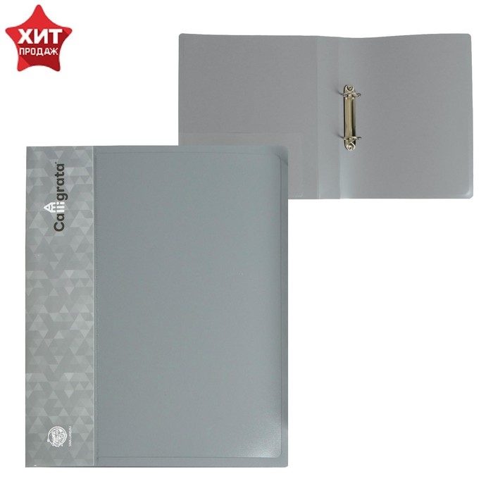 Папка на 2 кольцах А4, Calligrata, 18 мм, 500 мкм, серая