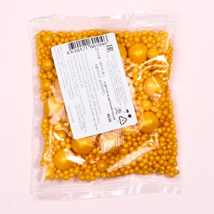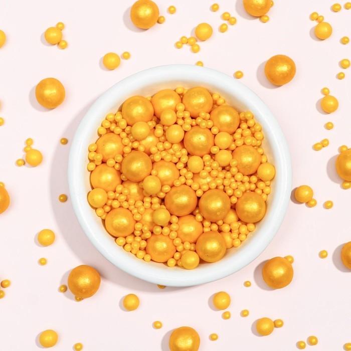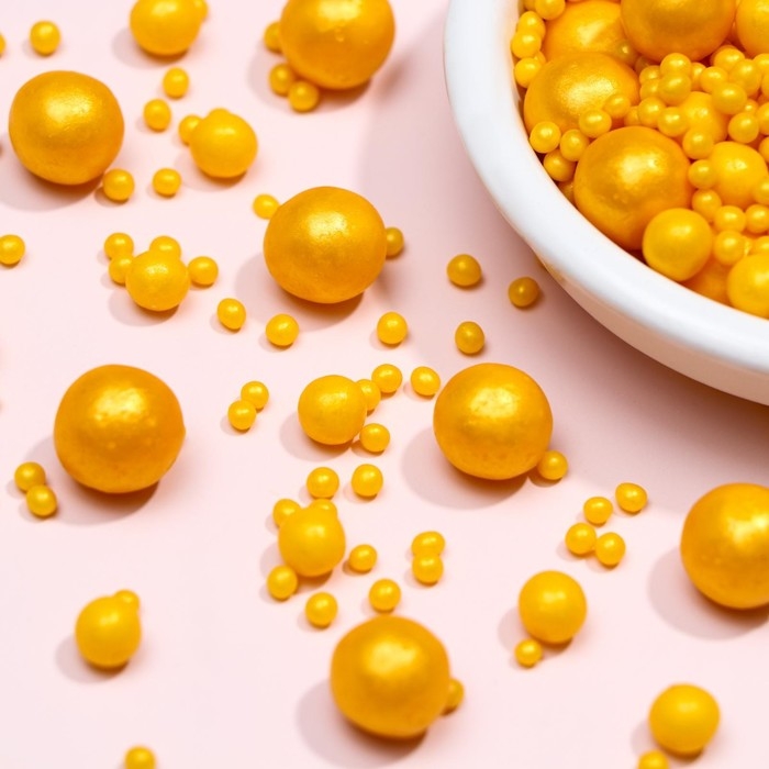 Кондитерская посыпка с мягким центром "Жемчуг": золотая, 50 г