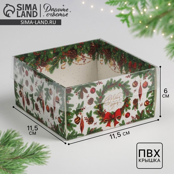 Коробка для кондитерских изделий с PVC крышкой New Year, 12 х 6 х 11,5 см