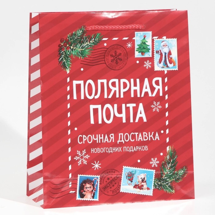 Пакет подарочный новогодний ламинированный «Полярная почта», ML 21 х 25 х 8 см