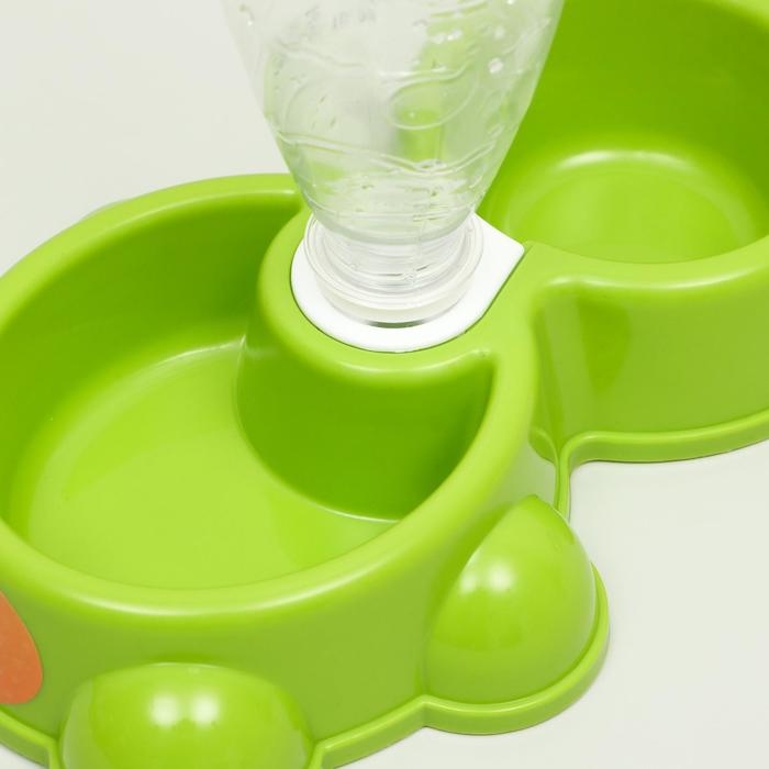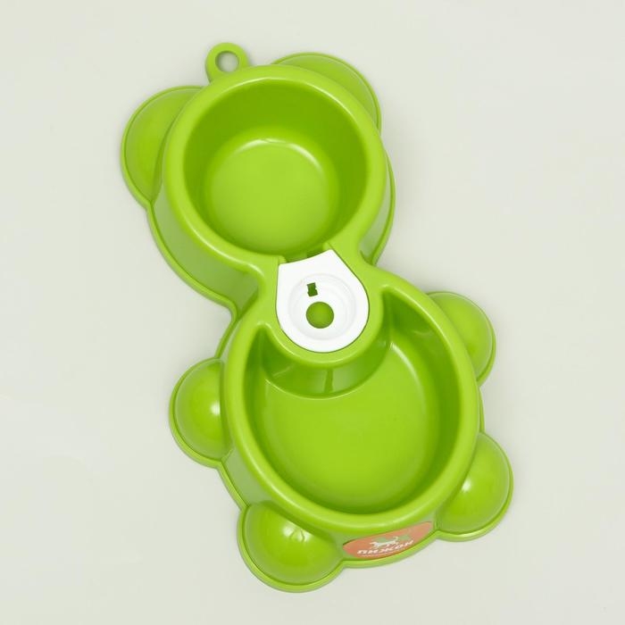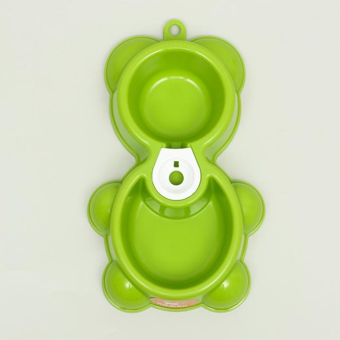 Миска двойная "Мишка" под бутылку, 24,5 х 19 х 4 см, зелёная