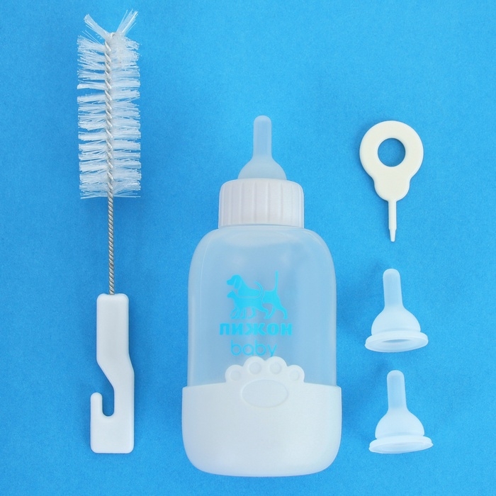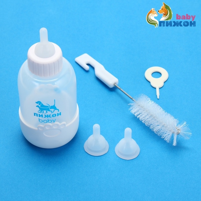 Набор для вскармливания щенков, котят и грызунов ПИЖОН. Набор для вскармливания применяют для искусственного вскармливания новорожденных и подрастающих щенков, котят и других животных, а также для кормления больных и выздоравливающих животных. Способ применения: кончик резиновой соски проткните иглой или отрежьте верхушку ножницами. Будьте осторожны, потому что из-за слишком большого отверстия в соске животное может подавиться. После каждого использования, тщательно помойте бутылочку и соску.