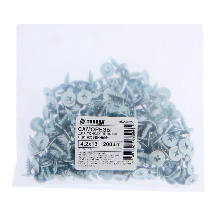 Саморезы для тонк. пластин ТУНДРА krep 4.2x13 мм, цинк 200 шт.