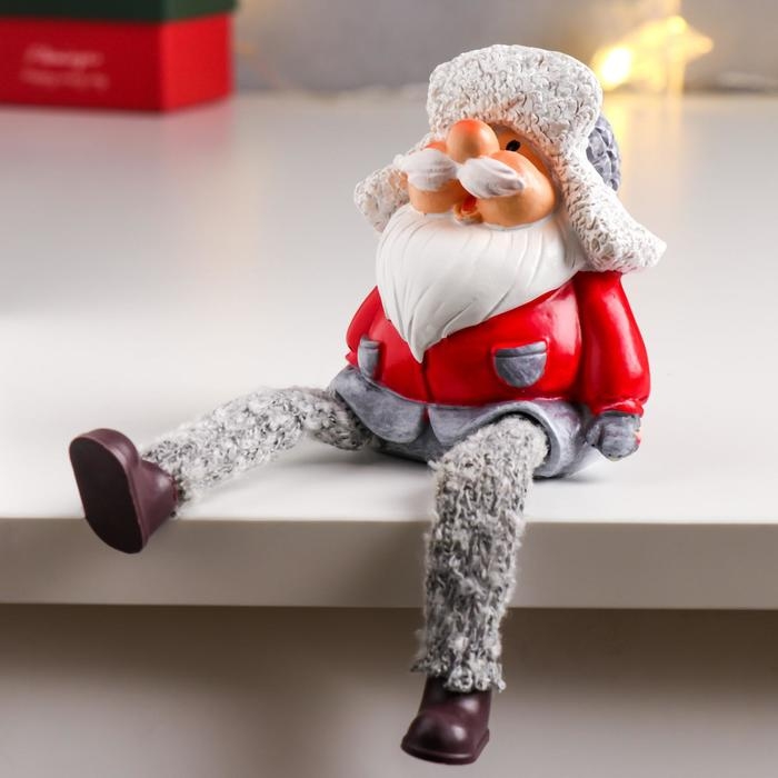 Сувенир полистоун "Дедушка Мороз в шапке-ушанке" длинные ножки 16,5х7,8х4,5 см