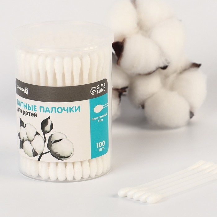 Ватные палочки в тубе 100 шт., наконечник - классика, хлопок/пластик(стик)