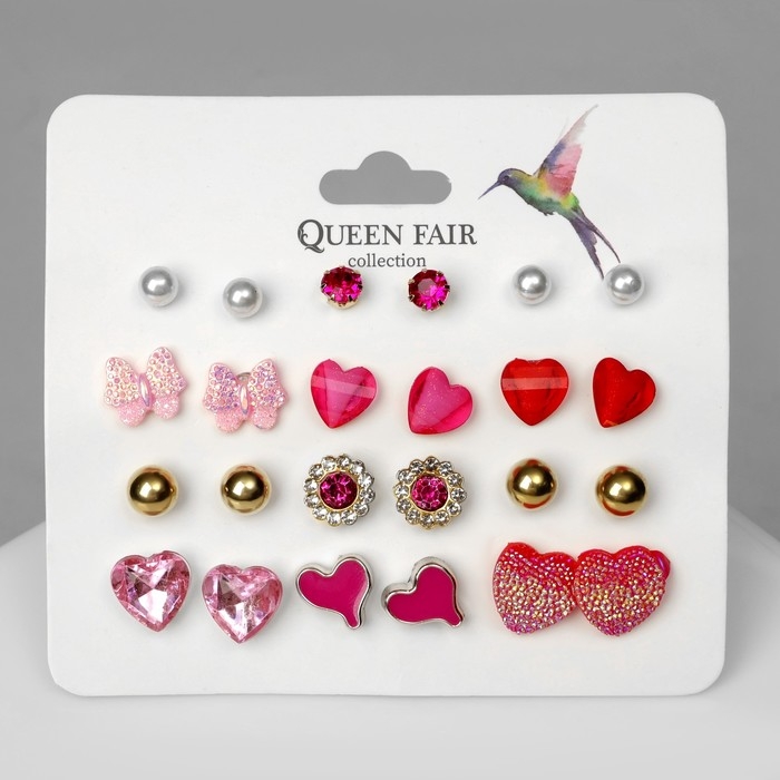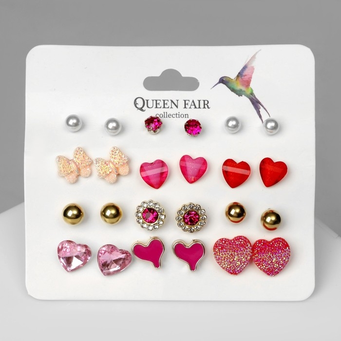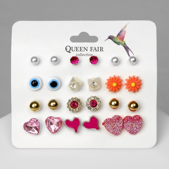 Пусеты 12 пар «Сердечки» свидание, цвет МИКС