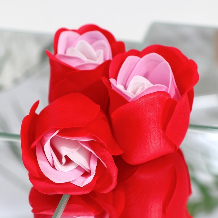 Благодаря точному повторению мелких деталей мыльные розы схожи с настоящими цветами. Композиция наполняет помещение тонким и ненавязчивым цветочным ароматом.