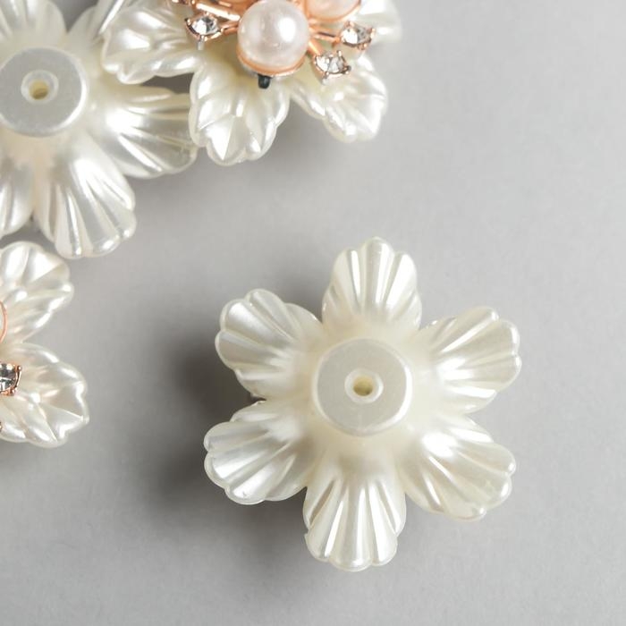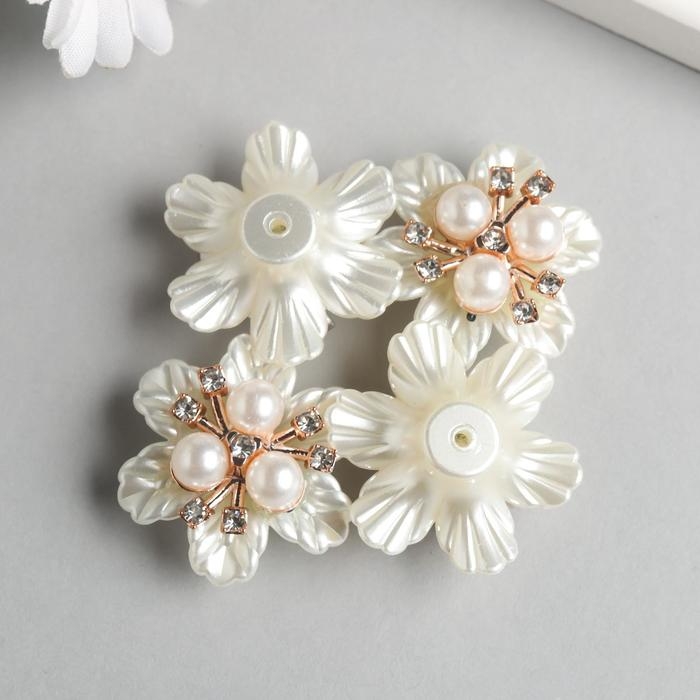 Декор для творчества металл, пластик "Цветок с жемчужинами" стразы 1,8х3,4х3,4 см