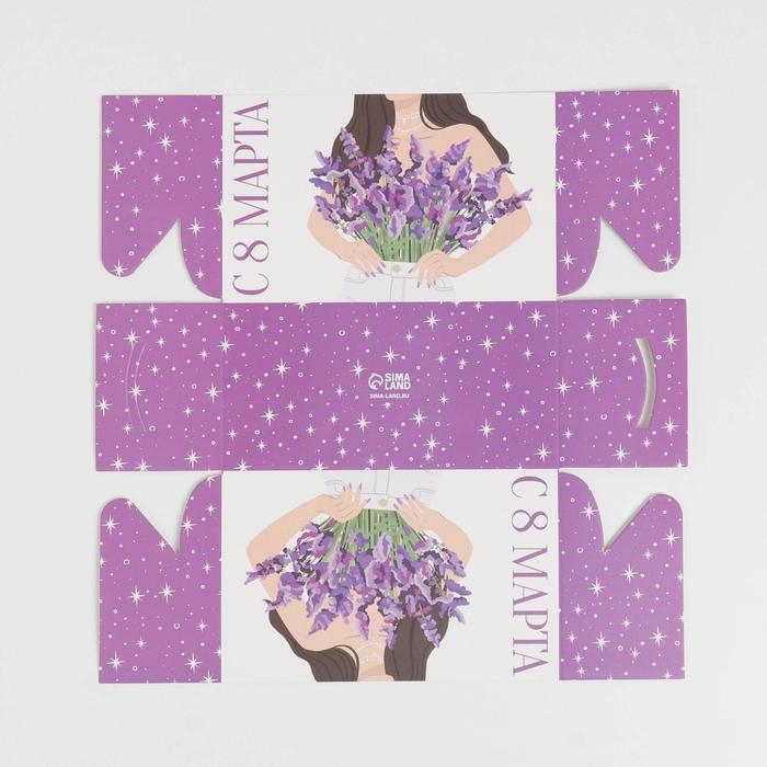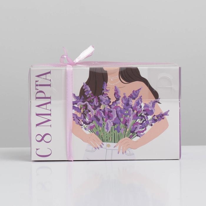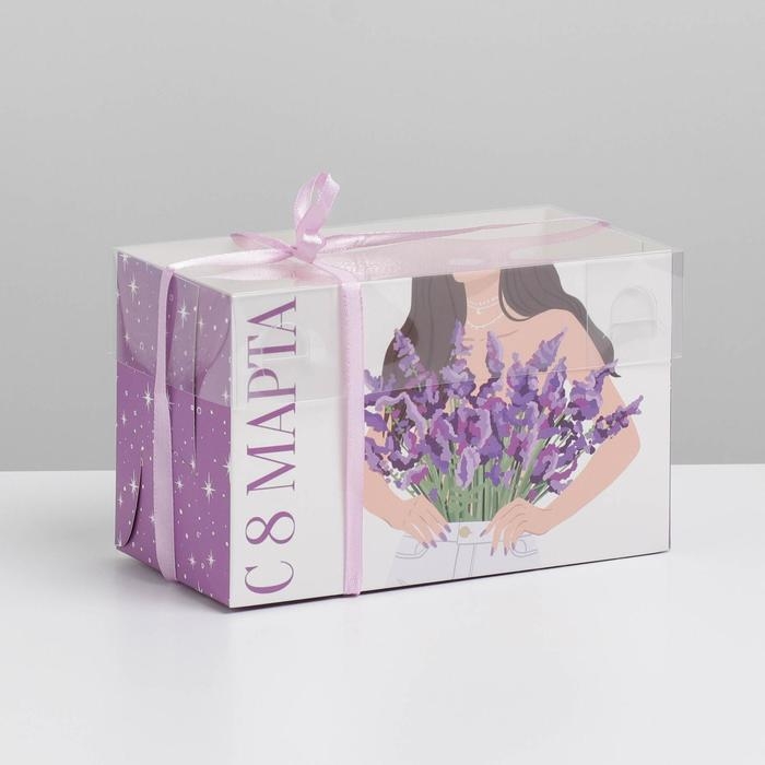 Коробка для капкейков, кондитерская упаковка с PVC крышкой, 2 ячейки, «8 марта», 16 х 8 х 10 см