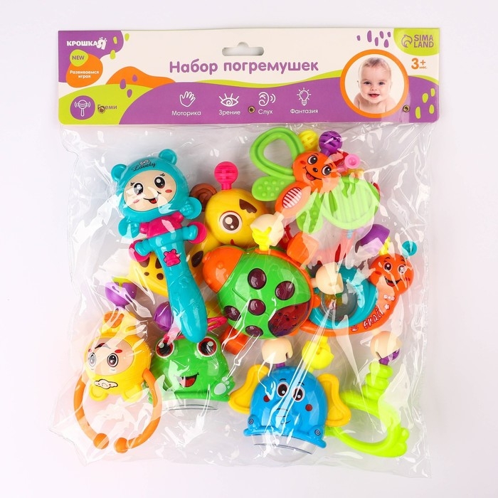 Набор погремушек Крошка Я «Собери меня», 10 шт, яркие цвета