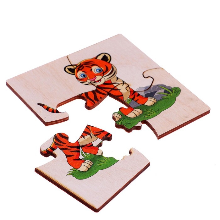Фигурные пазлы из дерева «Дикие животные» 10 пазлов в наборе