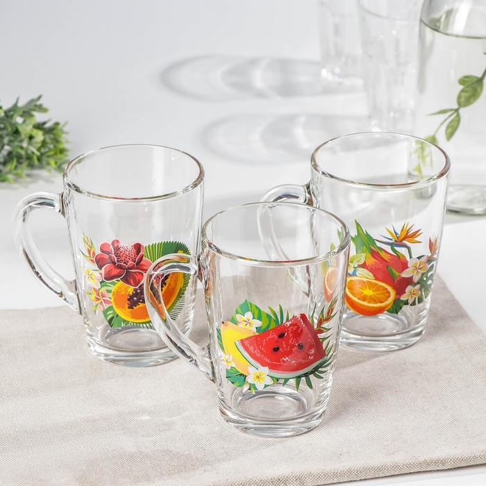 Кружка стеклянная «Тропические фрукты», 300 мл, рисунок МИКС