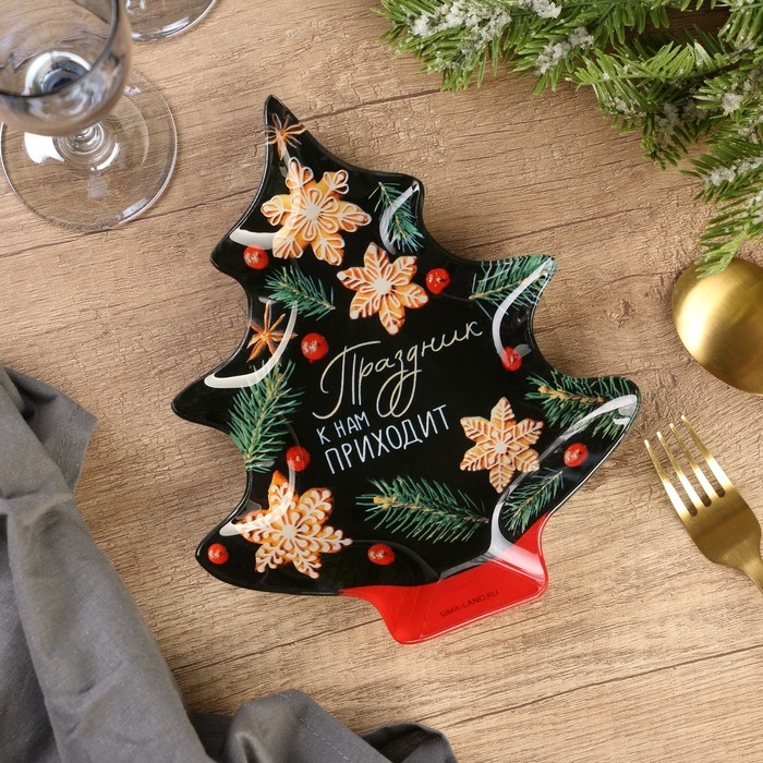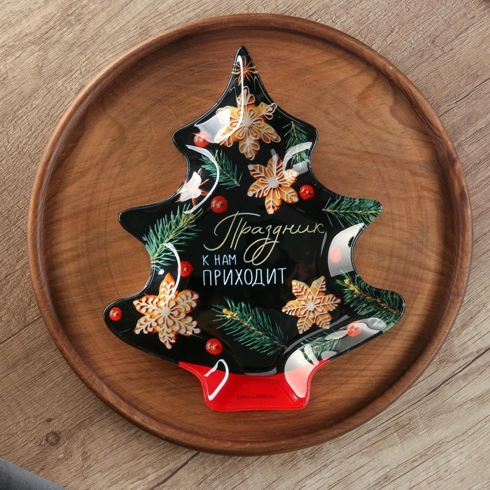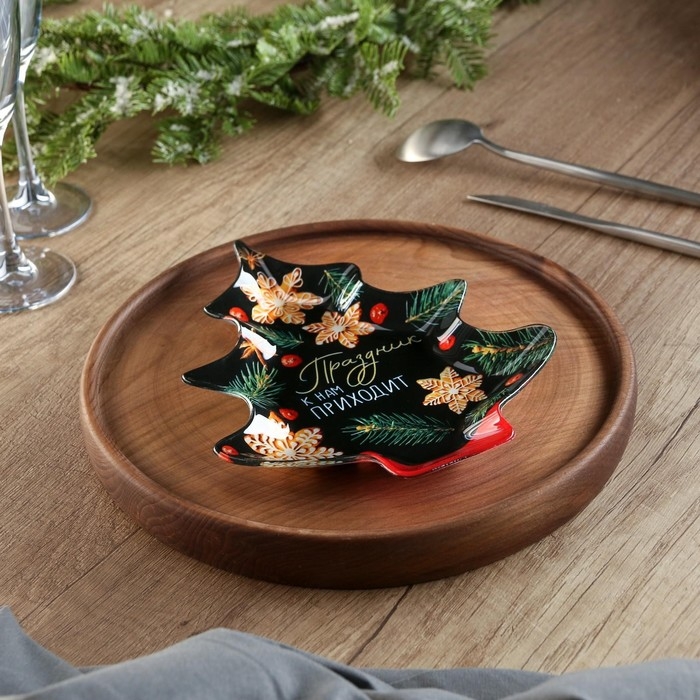 Тарелка в форме ёлки новогодняя Дорого внимание «Праздник к нам приходит», 19,5 х 16,5 см, стекло