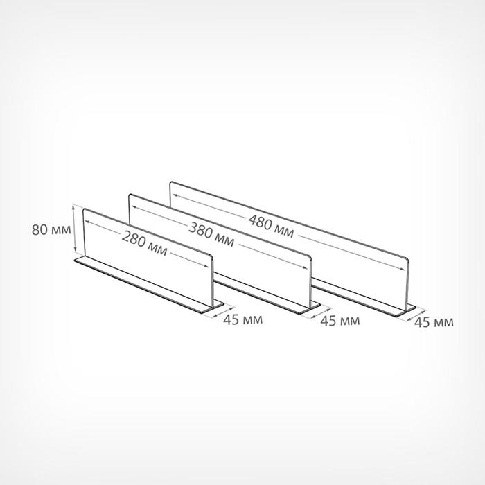 Универсальный разделитель высотой 80 мм с нижним Т-профилем. Тип крепления: магнитный скотч.