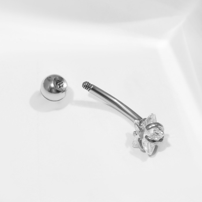 Пирсинг в пупок «Банан» звезда, L=2 см, цвет белый в серебре