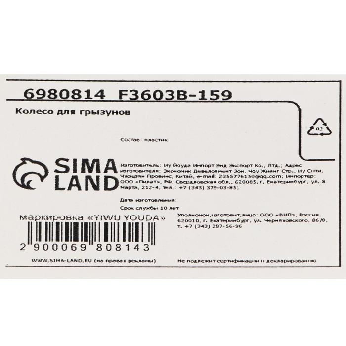 Диаметр колеса составляет 12,5 см, что делает его идеальным вариантом для хомяков, мышек, песчанок и других мелких грызунов.