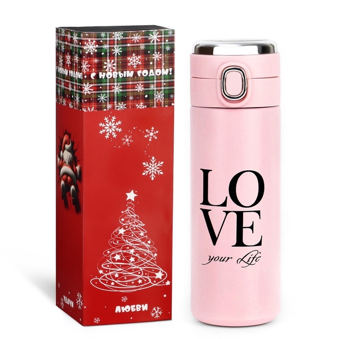 Термокружка, 420 мл, Simple Love your Life, сохраняет тепло 8 ч, термометр