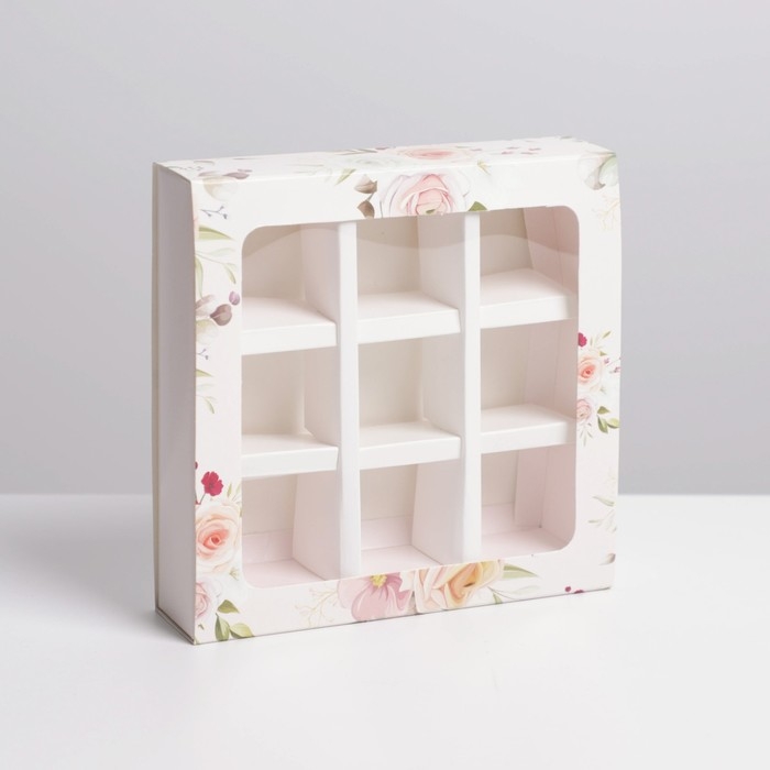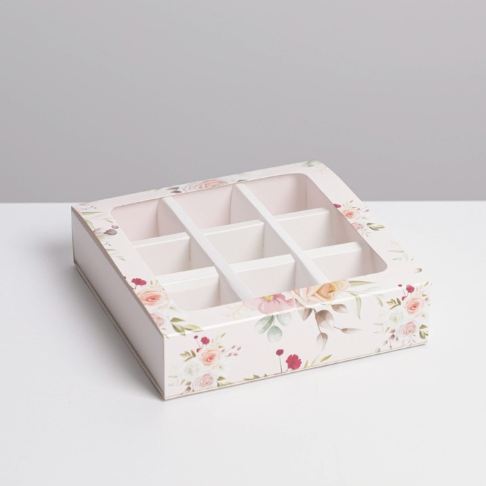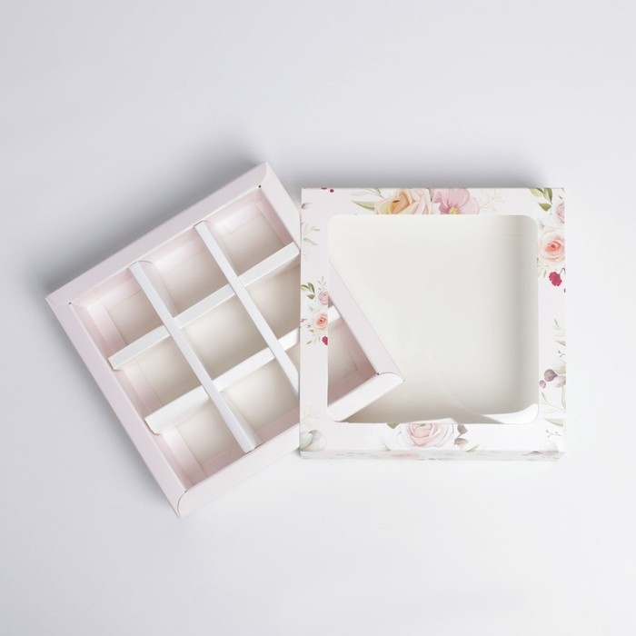 Коробка для конфет, кондитерская упаковка, 9 ячеек, «С 8 Марта» 14.5 х 14.5 х 3.5 см