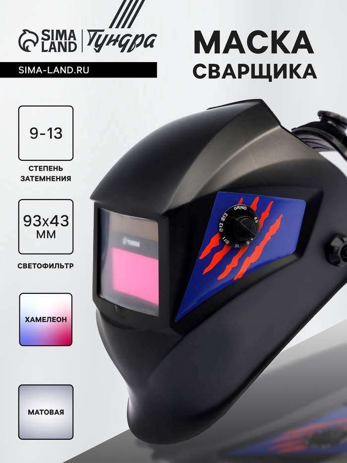 Маска сварщика ТУНДРА ПРОФИ Ф5, матовая, хамелеон, 93х43 мм, DIN 9-13, внешняя регулировка
