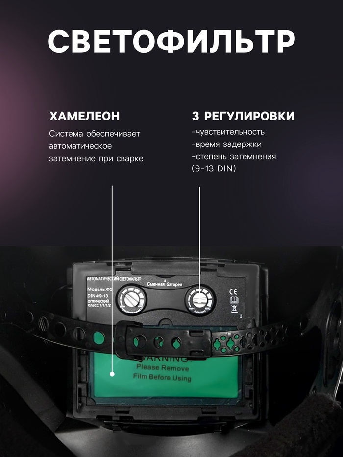 Автоматический светофильтр «Хамелеон» не требует дополнительных настроек.