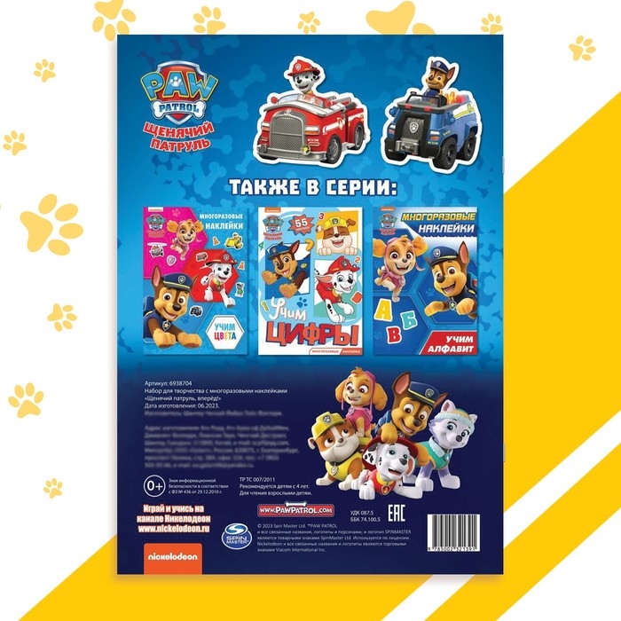 Набор наклеек «Щенячий патруль, вперёд!» — это возможность для ребёнка принять участие в невероятных приключениях Щенячьего патруля. С помощью многоразовых наклеек можно украсить любой уголок внутри книги и помочь любимым героям в их путешествии.