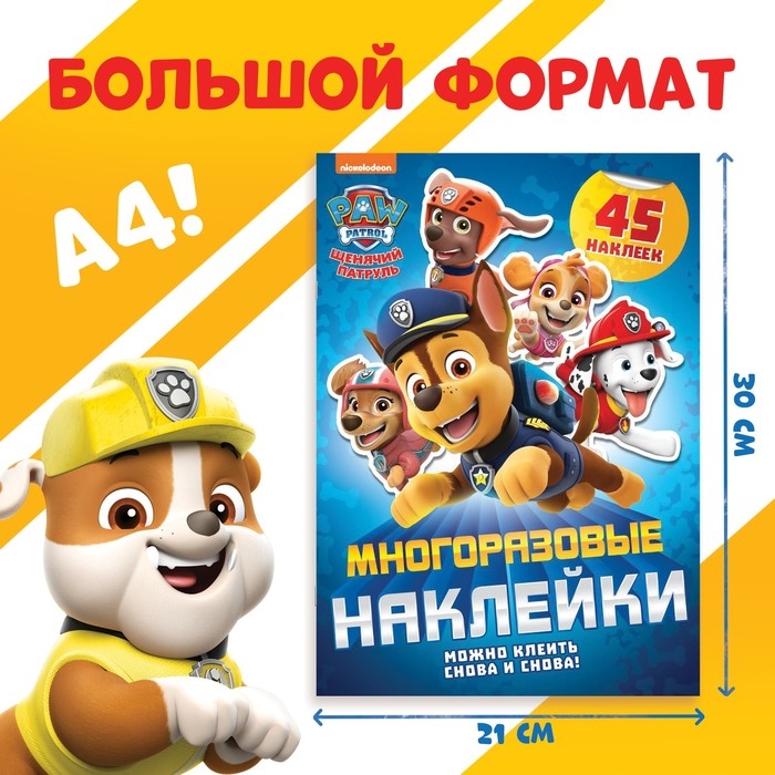 Книжка с наклейками многоразовыми «Щенячий патруль, вперёд!», А4, 45 стикеров