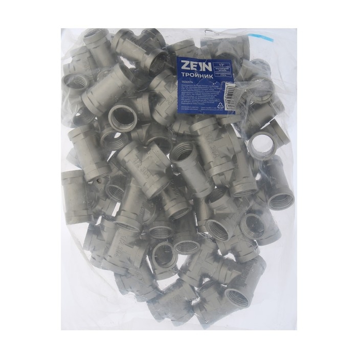 Тройник ZEIN engr, 1/2", внутренняя резьба, нержавеющая сталь