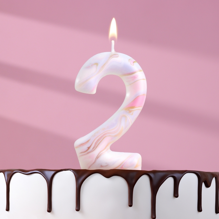 Свеча в торт "Белый мрамор", цифра "2", ГИГАНТ, 12,5 см