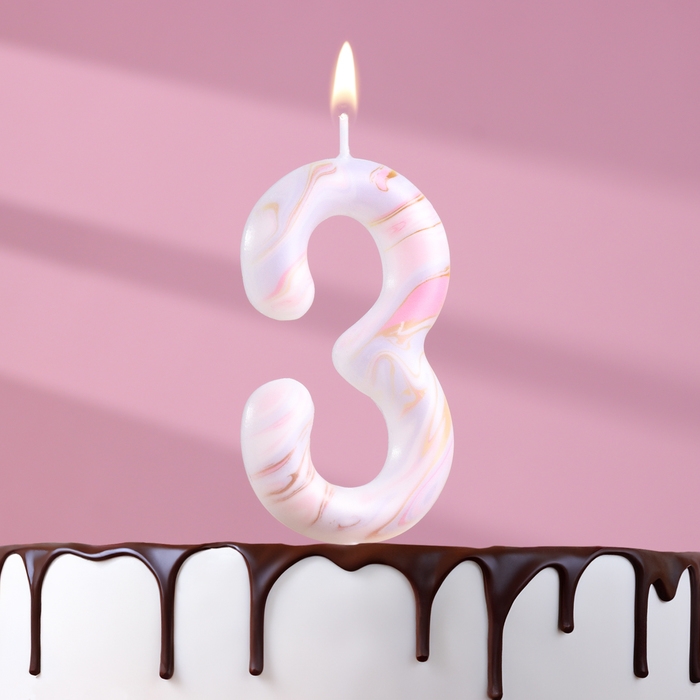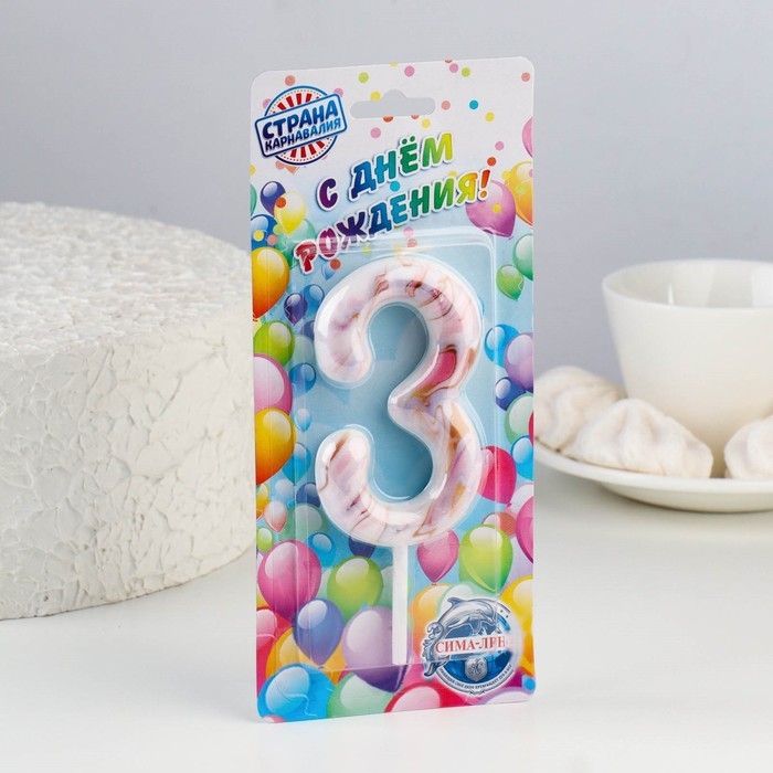 Свеча в торт "Белый мрамор", цифра "3", ГИГАНТ, 9 см