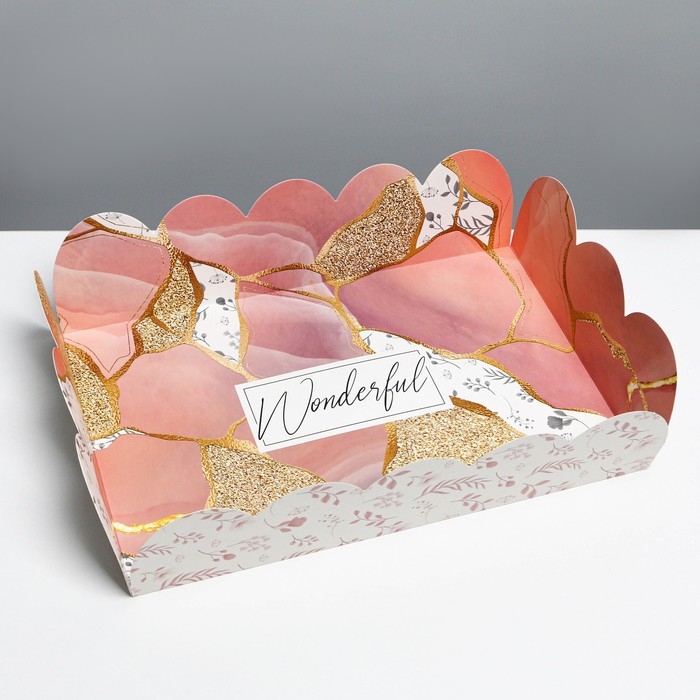 Коробка для печенья, кондитерская упаковка с PVC крышкой, «Камень», 20 х 30 х 8 см