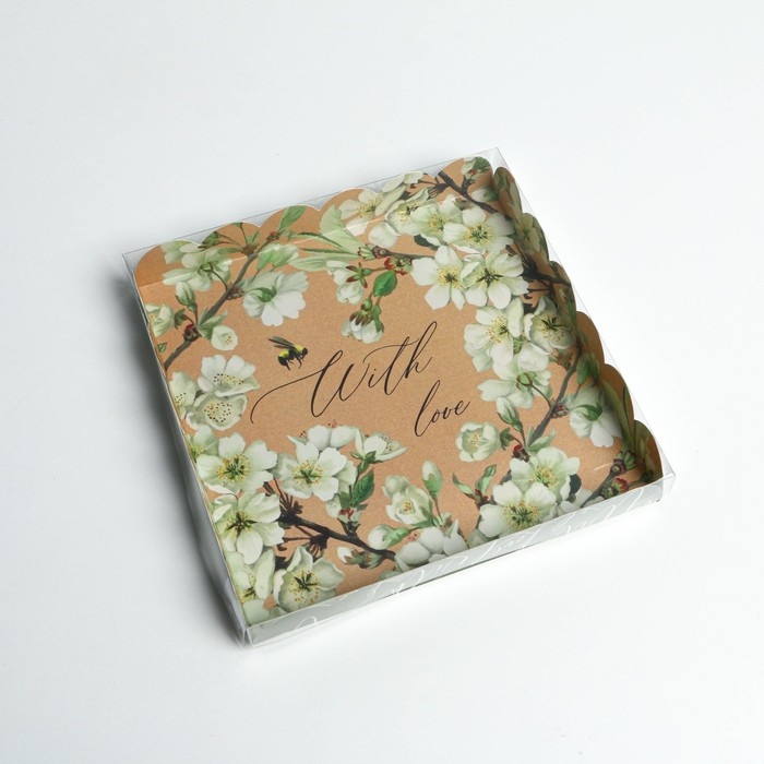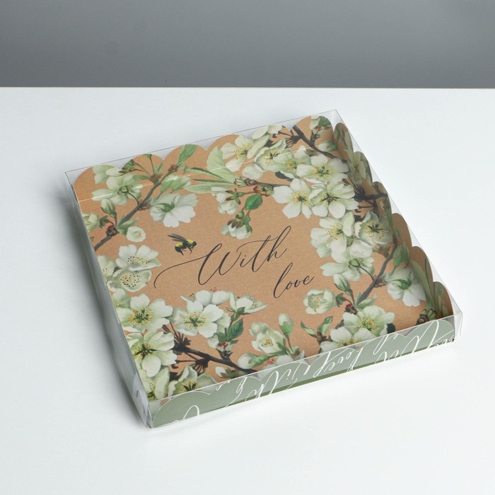Коробка для печенья, кондитерская упаковка с PVC крышкой, «Пчёлка», 21 х 21 х 3 см