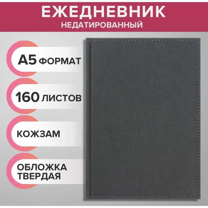 Ежедневник недатированный А5, 160 листов "Вивелла", обложка искусственная кожа, серый