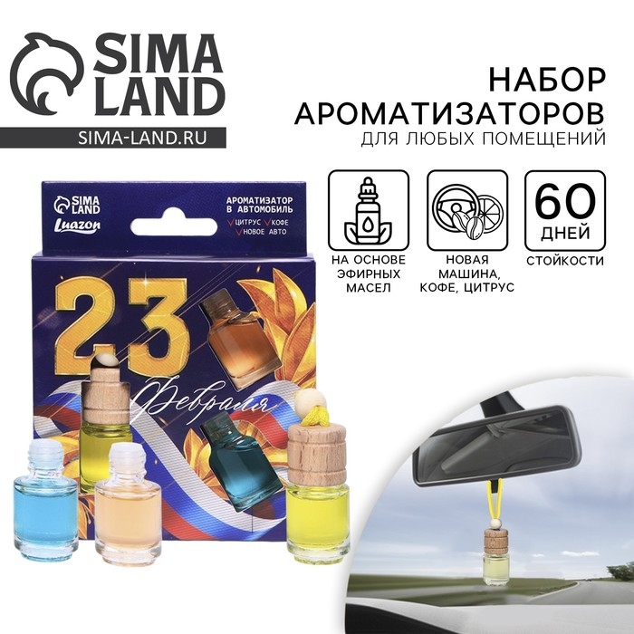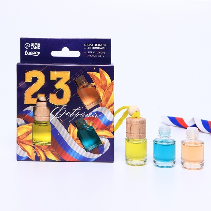 Ароматизатор в автомобиль на 23 Февраля (3 шт) «Блестящих побед», аромат: цитрус, кофе, новая машина