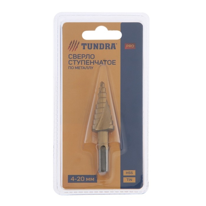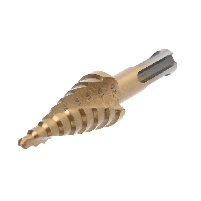 Сверло ступенчатое ТУНДРА ПРОФИ, HSS, TiN, спиральный профиль, SDS-plus, 4-20 мм