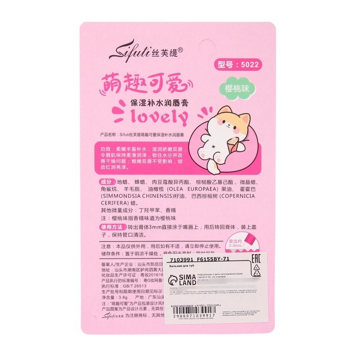 Способ применения: равномерно наносить на губы по мере необходимости.