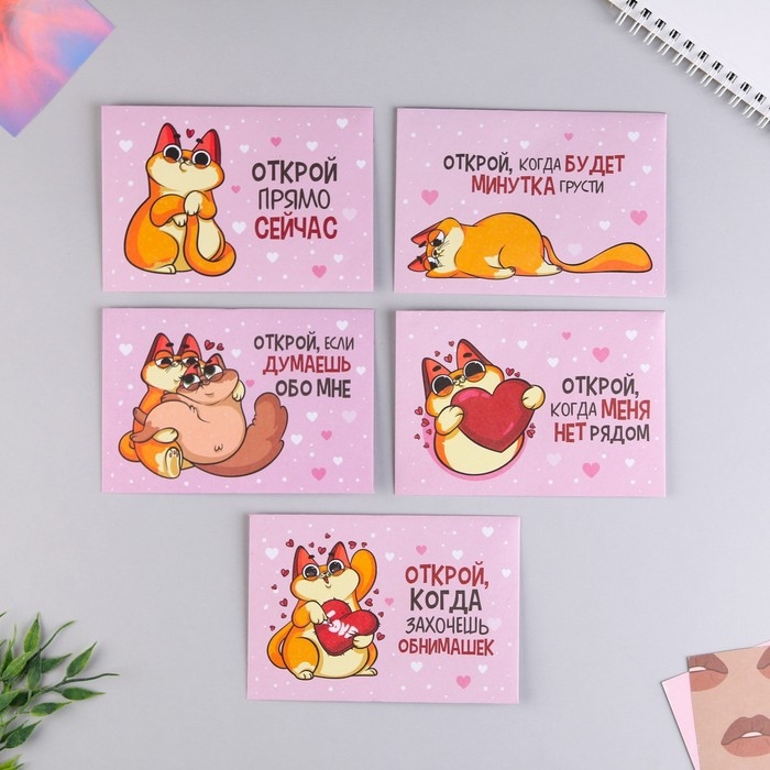 Конверты, набор «Открой, когда...», (Котик), 11 х 7 см.