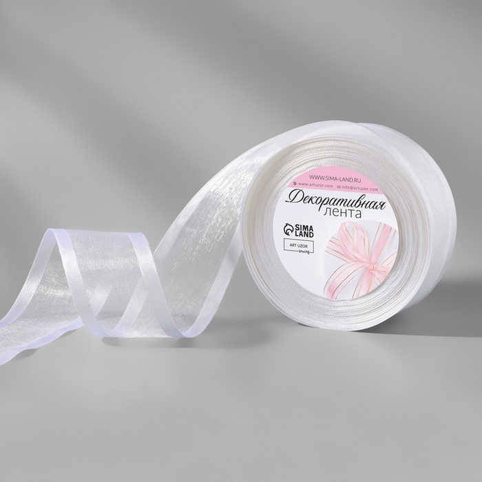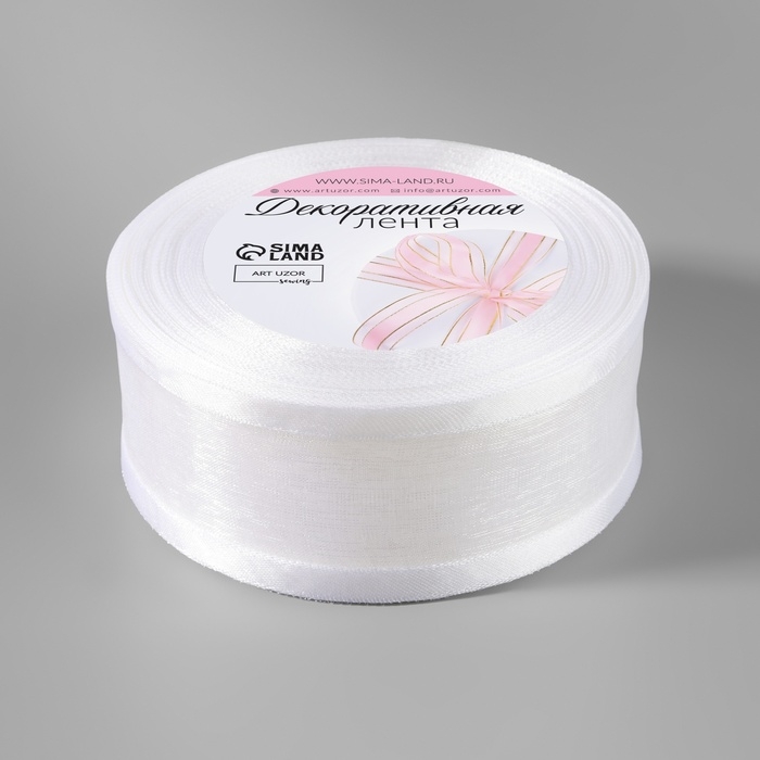 Лента декоративная, капроновая/атласная, 40 мм, 18 ± 1 м, цвет белый