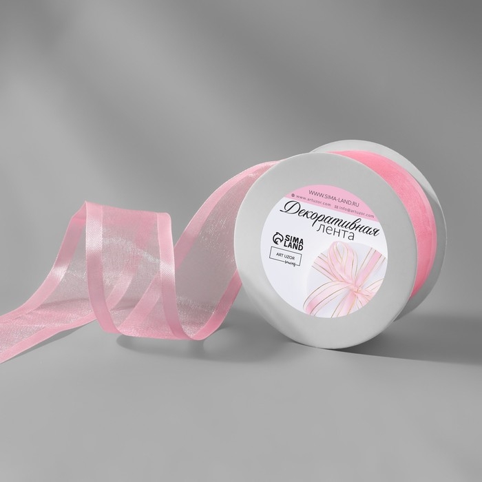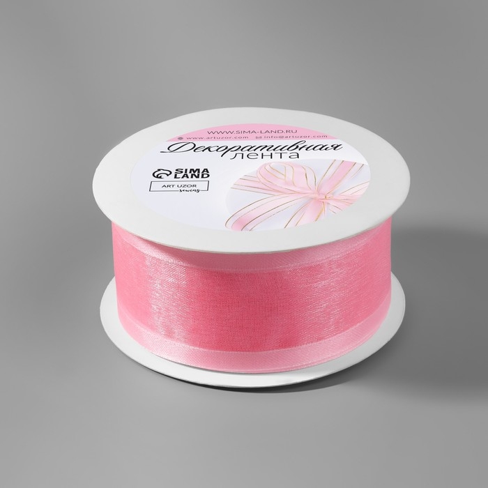 Лента декоративная, капроновая/атласная, 40 мм, 18 ± 1 м, цвет розовый