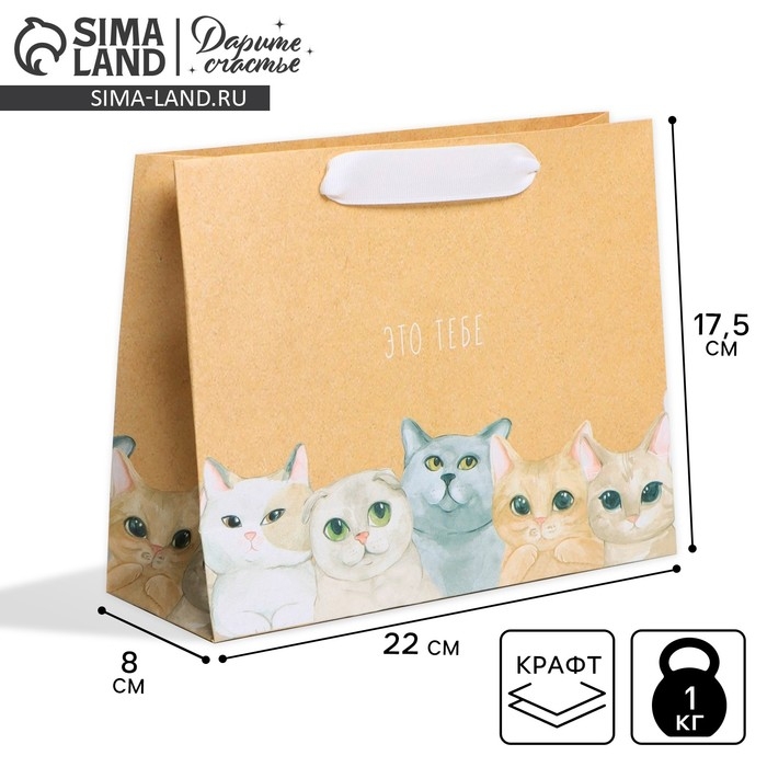 Пакет подарочный крафтовый, упаковка, «Тебе», 22 х 17,5 х 8 см