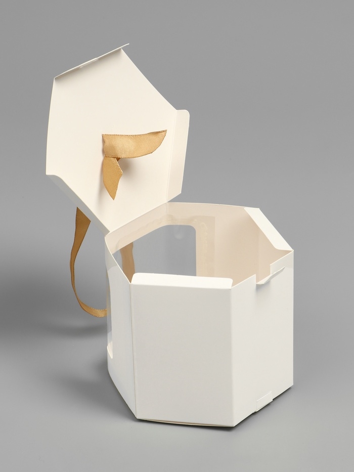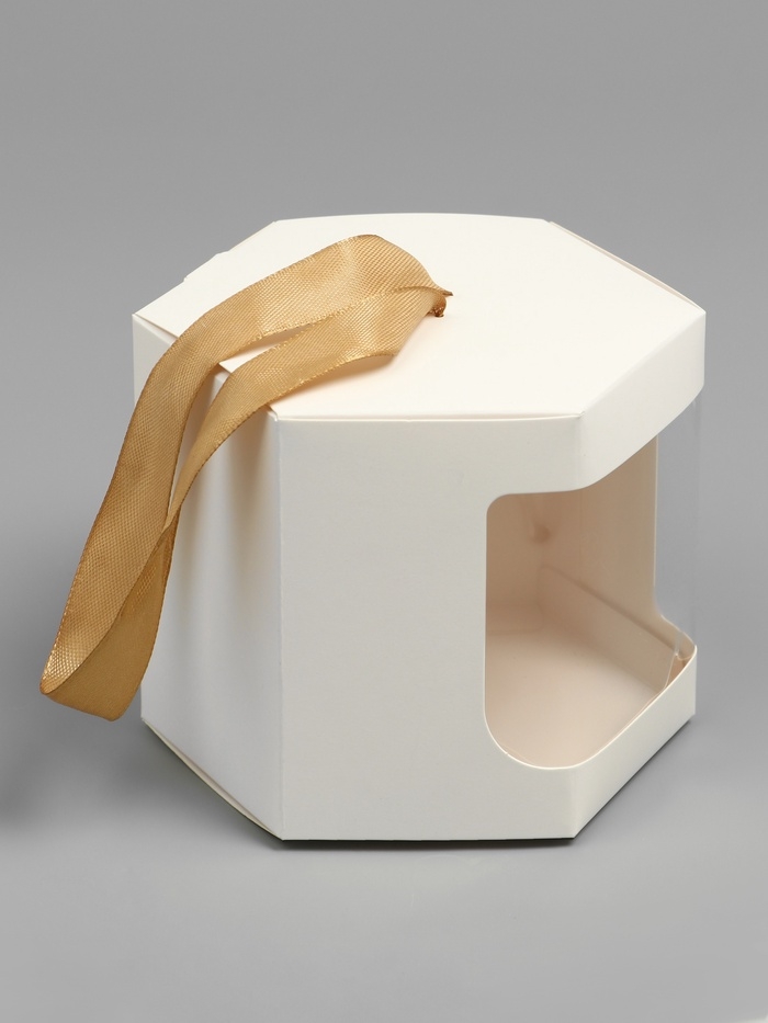 Коробка подарочная шестигранная, с окном, белая, 18 х 10 х 10 см