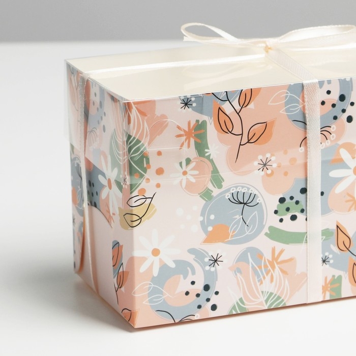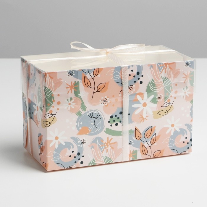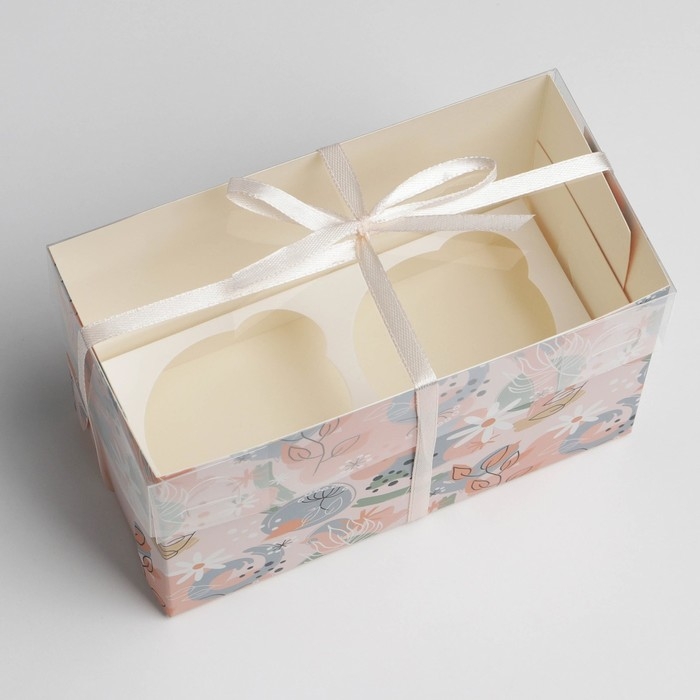 Коробка для капкейков, кондитерская упаковка, 2 ячейки «Нежная», 16 х 8 х 10 см