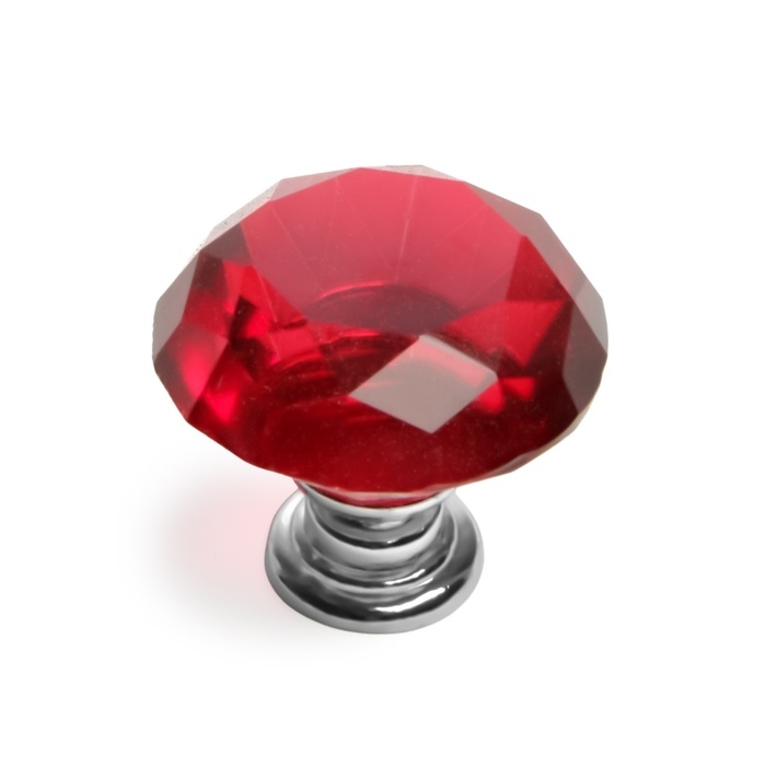 Ручка-кнопка CAPPIO "Алмаз", цвет красный, стеклянная, d=30 мм