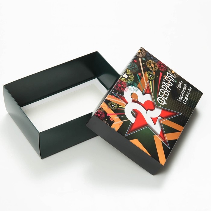 Коробка подарочная, крышка-дно, сборная "23 февраля", 21 х 15 х 7 см