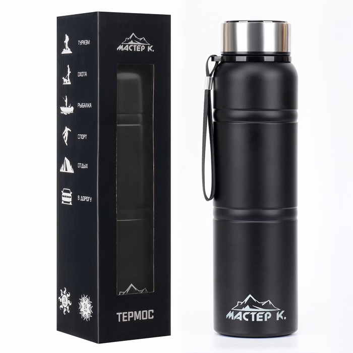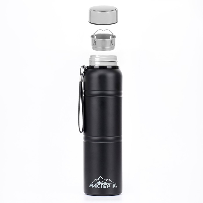 Термос, 850мл, Warm, сохраняет тепло 24 ч, с ситечком, с датчиком температуры, чёрный