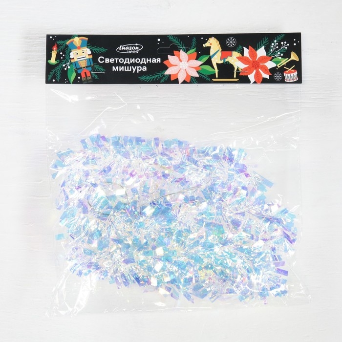 Гирлянда «Мишура» 1 м роса, IP20, перламутровая нить, 22 LED, 6 слоёв, d=5 см, батарейки CR2032х2 (в комплекте), свечение тёплое белое