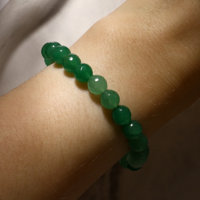 Круглые гладкие бусины сделаны из нефрита. Оттенок может немного отличаться от представленного на фотографии в зависимости от настроек экрана. Бусины могут различаться по форме и размеру. Возможны неровности естественного происхождения.